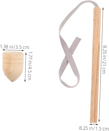 Trompos Wood Carved Tops with Rod Handmade Traditional Nostalgic Toys Sturdy Point Unpainted Wood Tops for Beginners Kids, 8 inch with 40cm Rod