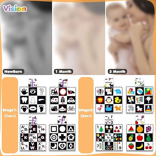 beiens Tummy Time Black and White High Contrast Crinkle Toys with Mirror Teether, Toys for 0-6-12-18 Months Toddler Newborn Baby, Sensory Play Mats, Baby Gifts for Boy Girl
