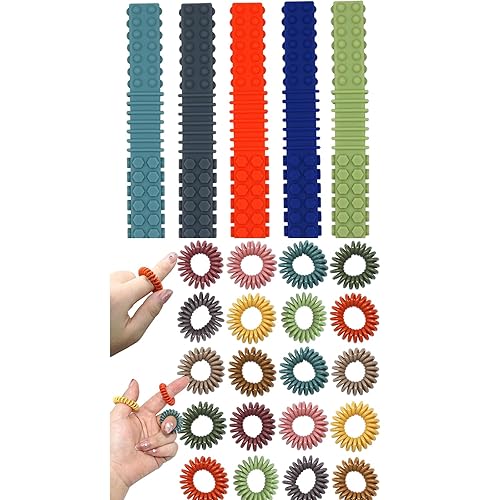 5 Pack Silicone Chew Tube Teething Sticks and 20 Pack Finger Rings