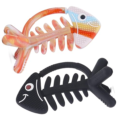 2PCS Baby Teething Toys, Rainbow Fish Baby Teether Black White Toy-USA Patent Pending