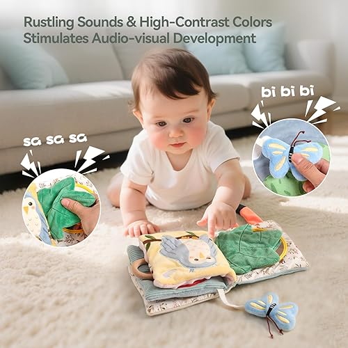 Soft Baby Book Sensory Books for Babies Newborn Infant Toys with Touch and Feel, Crinkle Pages, Mirror, Textures Early Learning Toy Gift for Tummy Time & Sensory Development