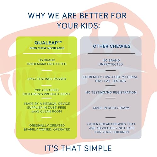 Xtra Tough (XT) Dino Sensory Chew Necklace for Kids, Boys or Girls - Chewing Necklace Teething Necklace Teether Necklace Chew Toys - Teething Toys Designed for Autism Aggressive Chewers
