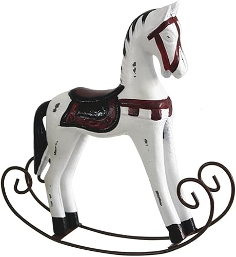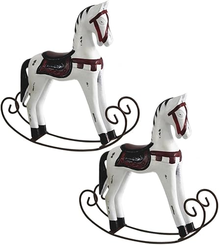 GARVALON 2pcs Wooden Rocking Horse Figurine Handmade White Waddle Horse Ornament for Home Decor Unique Vintage Desktop Adornment for
