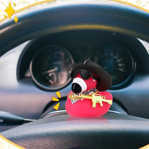 Sotiff Flamingo Rubber Duck Pink Flamingos Car Ornament with Sunglasses Neckerchief Cowboy Hat Gun and Necklace 2.17 x 2.17 x 2.36 Inches Rose Red Duck Car Dashboard Decoration Gift for Cool DIY