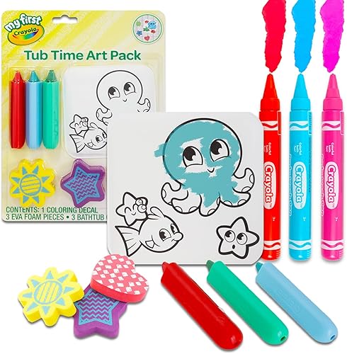 Crayola Bathtub Crayons Art Set for Kids - Crayola Tub Time Art Bundle with 6 Bath Crayons, Coloring Decal, and More | Bath Activity for Girls, Boys
