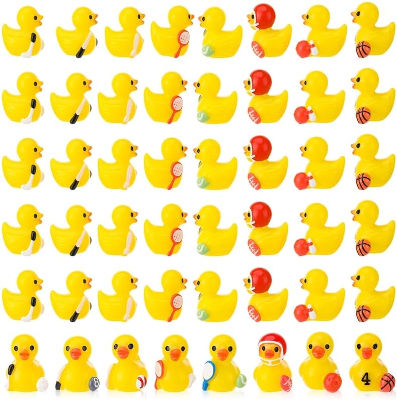 48 Pcs Sports Resin Ducks, Sports Themed Patriotic Ducks, Unique Mini Little Yellow Duck, Novelty Miniature Sports Duck Figurine Decorations for Sports Game, Sports Party Favor (8 Sports)
