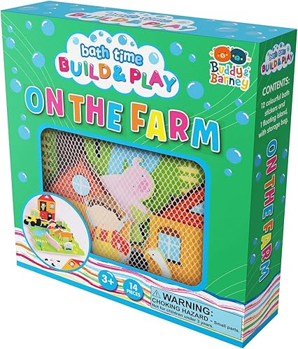 Buddy & Barney: Bath Time: Build & Play - On The Farm - Floating 3D Foam Stickers, Interactive Animal Scene, Suction Cup Mesh Bag, Water Toy, Kids 3+
