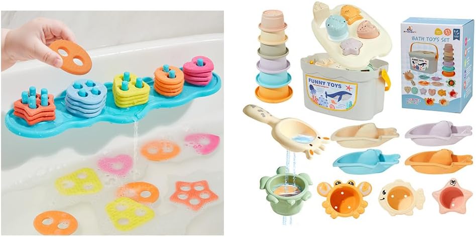 20PCS Toddler Bath Toys & 21PCS Bath Toys with Shape Sorer Toys