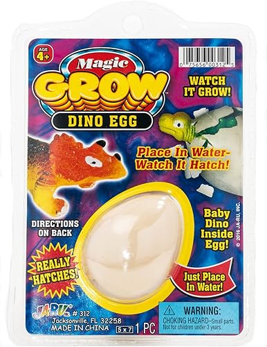 JA-RU Magic Grow Growing Dinosaur Toy (1 Egg Assorted) Surprise Hatching Dino Eggs in Water for Kids. Jurassic Party Favors Easter Basket Stuffers Pinata Fillers. 312-1A