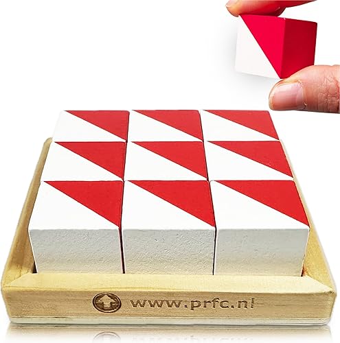 PrfcNL IQ Test Blocks - 9 wooden cubes in white and red with 60 patterns and mobile app, ideal for WISC, WAIS, WPPSI prep,educational STEM Montessori gift toy for All Ages Challenge