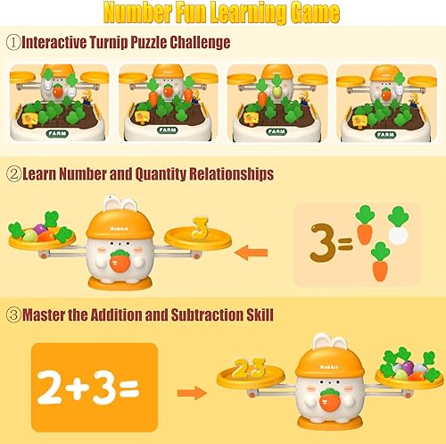 Cute Bunny Balance Math Toy with Carrot Harvest Game - STEM Learning Toy for Toddlers - Counting and Number Blocks, Educational Activity Toys for Kids Ages 3 4 5 Kindergarten Preschool Birthday Gift