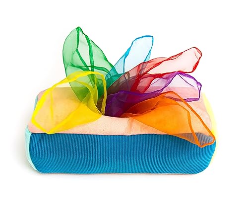 Baby Tissue Box Toy - Montessori Play for Infants and Toddlers - Sensory Textured Box with 12pcs Matching Colorful Scarves and 3pcs Crinkle Paper