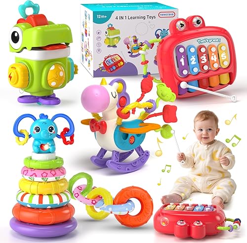 4 in 1 Baby Toys for 6-12 Months, Infant Sensory & Stacking for 1 Year Old, Dinosaur Busy Cube Toys for Babies 6-9-12 Months, Piano Xylophone Musical Travel Toy, Christmas Birthday Gifts for Toddler