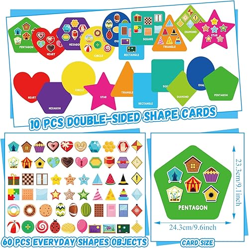 70 Pcs Shape Sorters for Toddlers Shape Puzzle and Matching Games Set with 10 Sorting Mats and 60 Everyday Objects Pieces for Kids Preschool Classroom Child Learning