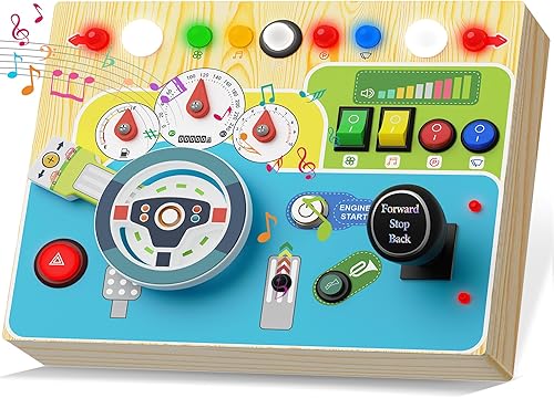 Busy Board With Led Light - Montessori Busy Board Wooden Sensory Toys for Toddlers 1 2 3 Years Old, Educational Baby Fidget Boards Toy, Creative Birthday Christmas Gifts for 1-3 2-3 3-4 Year Old Boys