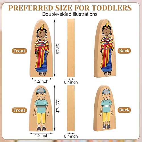 Syhood 30 Pcs Wooden Community Helpers Mini People Figures Multicultural Career Wood People Figures Diversity Wood Block Character Set for Preschool Classroom Play Game Educational Learning Supplies