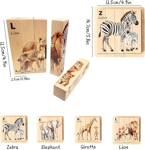 Wooden Puzzles for Toddlers, Montessori Toys, 4 in 1 Wooden Animal Puzzle Toy, Wood Block Puzzle with Durable Base, Preschool Learning Educational Toys for Kids & Toddlers