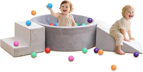 Foam Ball Pit with Play Block for Toddlers Ball Pool Climbing Block Soft Play Equipment for Babies Kids Children Indoor Outdoor Active Play Structure (Ball Pit, Stair, Slope)