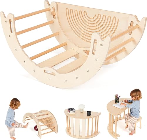 Climbing Arch for Toddlers, Multiuse Montessori Climber, Toddler Rocker, Wooden Balance Board, Toy Storage, Easy to Assemble Play Gym - Detailed Guide Included, Perfect for Active Play
