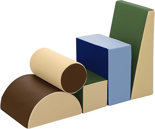 Toddler Climbing Toys Indoor: 5-Piece Soft PU Leather Baby Climbing Blocks - Soft Play Climbing for Toddlers - Safe Baby Play Gym(Earthtone)