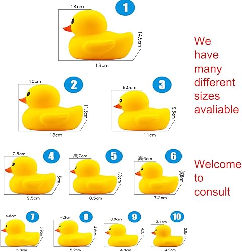 Great Size and Not too mini: 2 L*1.8 W*2 H(Inch); Bath ducks can float upright! Make baby enjoy the shower time.