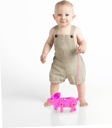 Musical luminous :put the battery on, the battery is not included, the pig can walk automatically,walking