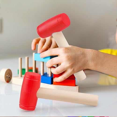Funny fake hammer - The wooden hammer mallets have bright colors, the child will love hammer toy them and pretend they are fixing stuff. Suitable for squeezing and relieving pressure