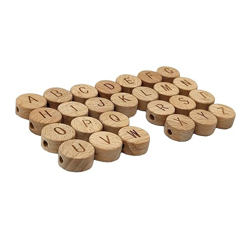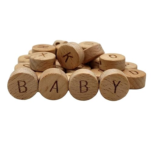 DIY Accessories-Organic Wood Alphabet Letter Beads,Color: natural wood color,Packing quantity:52pcs.