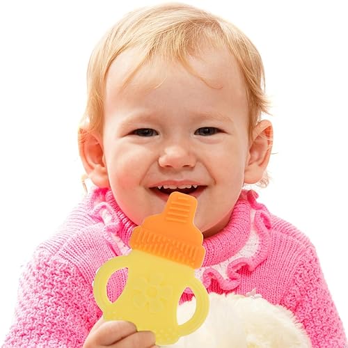 teether:it's great for gum relief and jaw development, also for sensory exploration, Teething