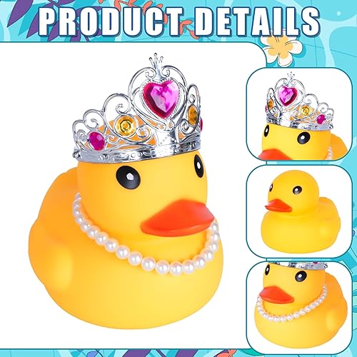 【Squeak and More Fun】 You will get a cruise ducks for hiding with Crown and Pearl Necklace,size of 7.48*5.5*6.3 inch. These rubber ducks funny can make special "BEBE~" sound when squeezed, it's fun for baby to play with, and be a perfect addition to the toy collection.