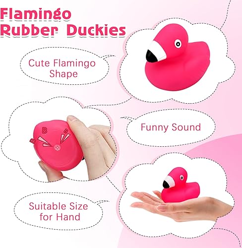 Cute Pink Flamingos: these flamingo rubber duckies are designed in cute shape, vibrant and funny, they can float on the water, kids will enjoy playing in the bath or in the swimming pool with these duckies; when you press it, it will make a squeaky sound, making bath time more fun, giving little ones a pleasant experience.