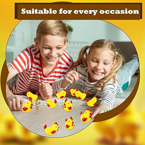 ✅Size Detail: These mini rubber chickens measure approximately 1.8 inch x 2.8 inch x 2.2 inch/ 4.5 x 7 x 5.5 cm, just the right size for little hands to grip, squeeze, and play with ease. Compact and portable for bath time or party fun