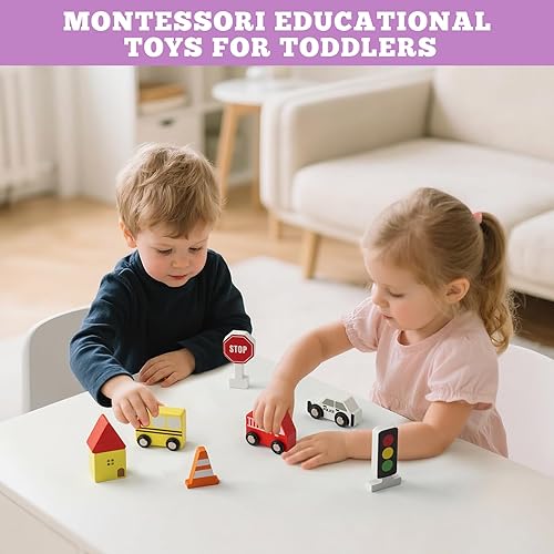 Sensory Table for Toddlers 1-3: baby activity toys feature realistic shapes and delicate textures, meticulously replicating cars designs, paired with vibrant colors to inspire children's limitless creativity. Made from selected high-quality natural wood, smoothly polished with no burrs, durable and not easily damaged for long-lasting play.