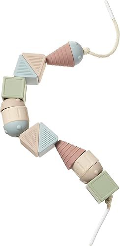 SAFE CONSTRUCTION: Silicone blocks with smooth edges and secure threading holes make it perfect for kids' hands to grasp and manipulate