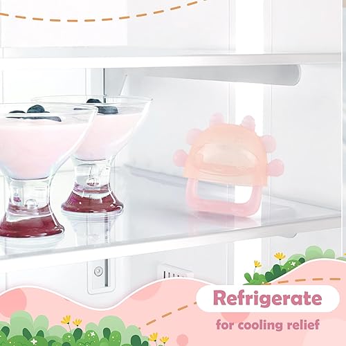 【Easy to Clean】: Our silicone teethers are easy to clean and maintain, making them hygienic for your baby to use daily. Simply wash with mild soap and water. These teething toys for babies 4 months is their ability to be chilled in the refrigerator. This cooling effect provides additional relief to my baby's tender gums.