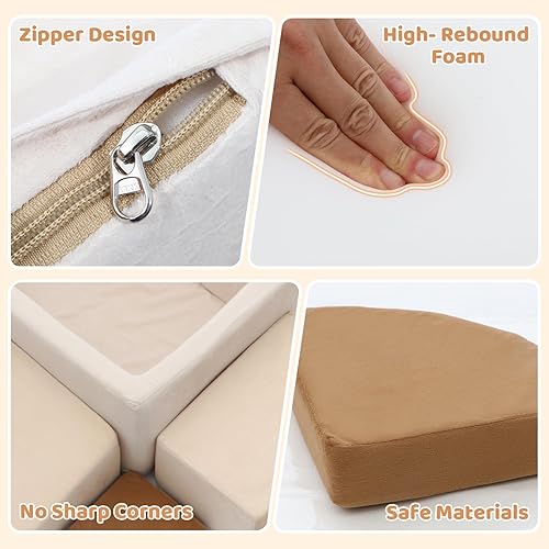 【MULTI-SHAPE VERSATILITY】This toddler foam climbing toy comes with a ball pit, including a ball pit (balls not included), a semicircular ramp, stairs, a slope, and 2 fan-shaped pieces. It can stimulate children's creativity. Kids can learn about shapes, sizes, colors and spatial relationships by stacking, arranging and handling the foam blocks. Plus, climbing up and down the blocks enhances their gross motor skills (balance, coordination, strength and overall physical growth)