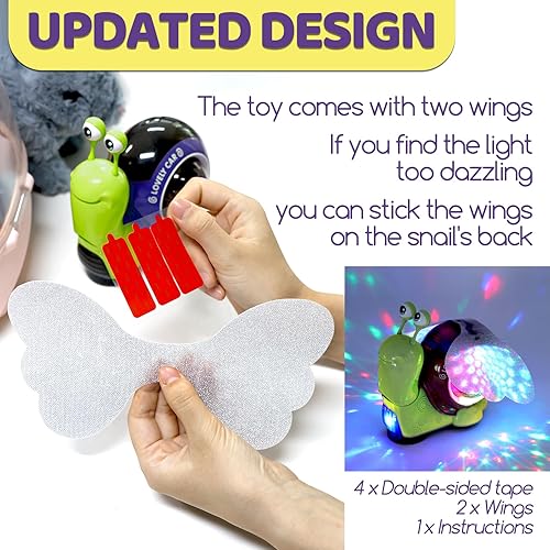 【DAZZLING LIGHT SHOW & MUSIC】The snail's translucent shell refracted colorful LED lights synchronized to a playful 7-second melody from "The Little Goatherd." Stimulates sensory development and captures children's curiosity with visuals and sound, adding a unique kind of fun to the playtime.