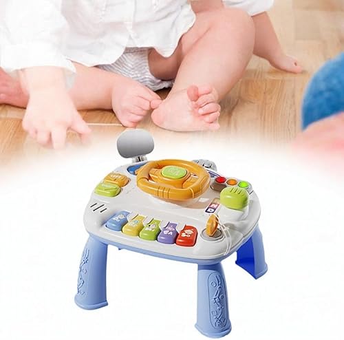 Versatile Play and Learning Station: This multifunctional children's activity table is designed to engage infants aged 0-3 year with a variety of educational and entertaining features, including an interactive steering wheel game that stimulates cognitive development