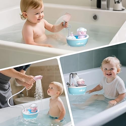 【Fun in Bath Time】The multifunctional bathtub fountain toy entices your baby to actively grab the shower hose and play, and your little one will be happy to try to scooper water and pour water! Naturally exercise hand-eye coordination and concentration in a happy interaction, so that your baby can get excited and enjoy bath time
