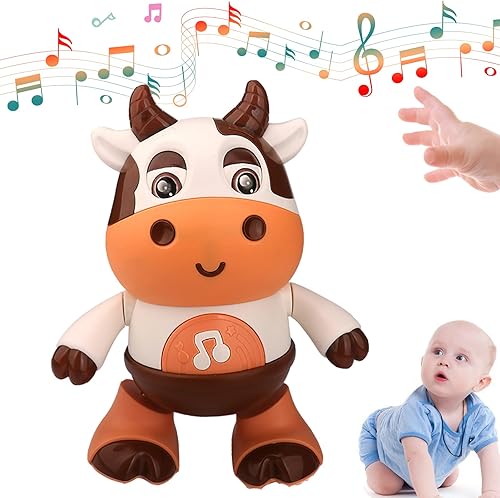 【Unique Design】Dancing cow baby toy can move turn and left, and the arms swings up and down, even can even blink when moving. There are 2 modes for choose. You can choose the cattle to glow in a static state or dance to music and lights.