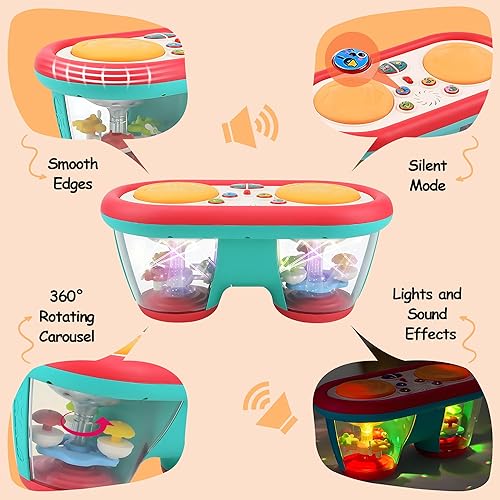 Musical Baby Drum for Sensory Play: The ROHSCE Baby Drum is designed for babies 6-12 months, featuring light-up effects and music to stimulate auditory and visual development. Perfect for encouraging early motor skills and interactive play.