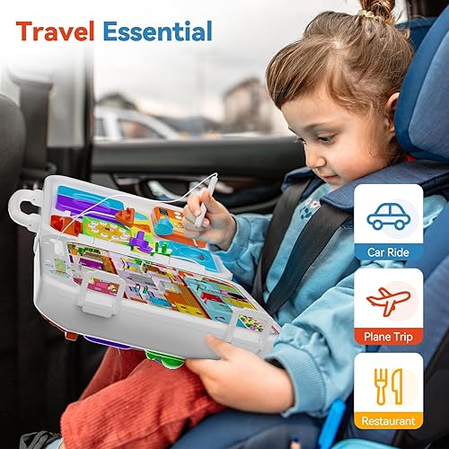 Travel Essential Toys: Compact Size, portable handle design, making it easy to take along on a car, plane trips, restaurant or move between rooms for engaging playtime anywhere. 2 adjustable volume level for quiet play. Toddler boy girl toys for ages 2-4.