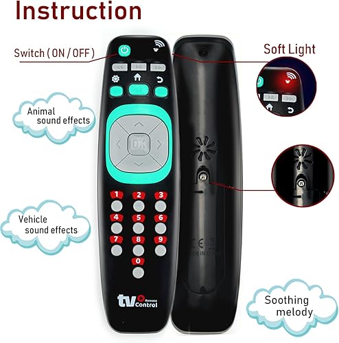 Musical Toy with Light and Sound: TV remote control toy and pretend baby cell phone include soft music, sound effects, animal sounds, and so on. More than 65 sound effects for boys and girls to entertain and explore.