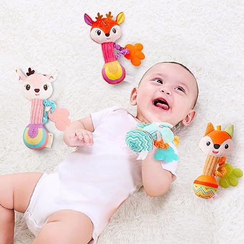 Multifunctional Design: Combines a rattle, teether, and plush companion, serving as a soothing crib mobile, handheld plaything, and teether for teething periods. Baby rattles and shaker toy fit various daily needs, keeping little ones engaged during playtime or calm moments.