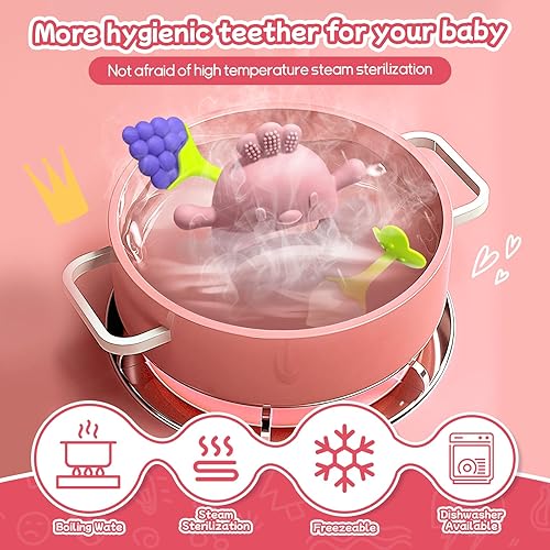 Baby's Safety is Our Top Priority - These baby teething toys are made of food-grade silicone. We are committed to focusing on the HEALTHY development and HAPPINESS of your baby.