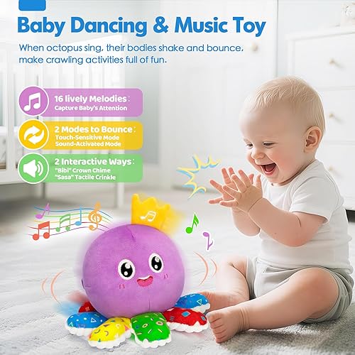 Perfect Gift for Babies & Toddlers :Ideal for 6 7 8 9 10 11 12 18 months sit-to-crawl baby boys and girls.This musical and crawling octopus toy makes a wonderful gift choice for birthday,holiday,or baby shower ,bringing joy,laughter and endless entertainment to every child's playtime!.Your child won't be able to keep eyes and hands off this moving interactive musical toys