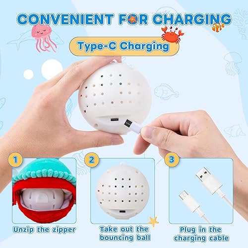 SAFETY FOR BABY AND RECHARGEABLE : Made from baby-friendly, ultra-soft and comfortable plush fabric, this baby toys 6-12 months is gentle on little hands and safe for cuddling.The dancing crab toy is perfect for gentle play and warm cuddles. Easily rechargeable via Type C port. Say goodbye to battery replacements! Removeable & Machine Washable and sized just right for both active floor play and quiet-time snuggles, Whether at home or outdoors.