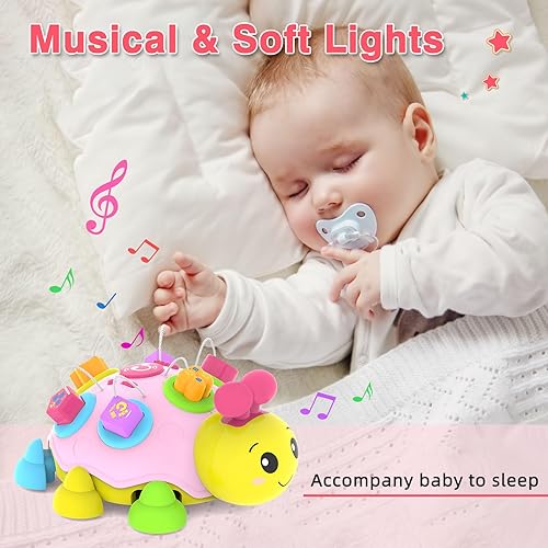 【Tactile Sensory Development】This baby toys 0-6 months is essential for tummy time play and sensory exploration,Features the shape matching mode with 6 cute shapes,Equipped with universal wheels, its bump & go function can self-avoid obstacles to guide the baby in a safe direction and help develop spatial awareness. It will attract your baby to chase and crawl.Great toy for babies to develop gross motor skills and learn how to control large muscles.