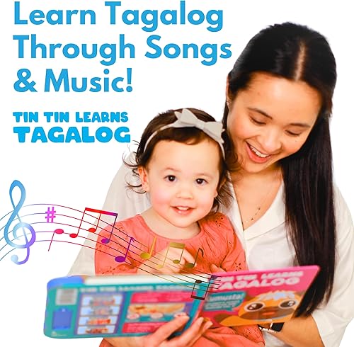 ❤️ TIN TIN LEARNS TAGALOG books are the perfect Tagalog books for kids, babies, toddlers, and children. This beautiful and durable Tagalog baby book is also an ideal Filipino baby book with music - fun, safe, and designed to last. These bilingual Tagalog books include beloved songs and are perfect for families who want to learn Tagalog for kids. A thoughtful gift for newborns, one year olds, two year olds, and three year olds, this Tagalog board book features non-tearing pages, built-in batterie