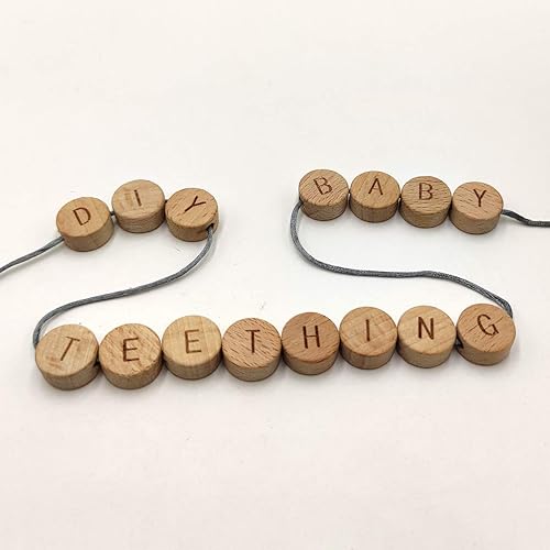 Organic Wood Alphabet Letter Beads Teether,DIY teething Accessories beads,Color:Natural wood